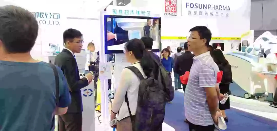 本次展会,聚焦超声体验区依旧引人注目。来宾通过按动按键,使打击影像投放在大屏幕上,结合现场工作人员对相关疑惑的讲解,使聚焦超声的理念深入人心。很多体验者都举起了手机,记录下这美好的时刻。